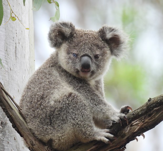 'Rarity' a beautiful koala Joey born with a unique and rare genetic condition called 'heterochromia' giving her one blue and one brown eye.