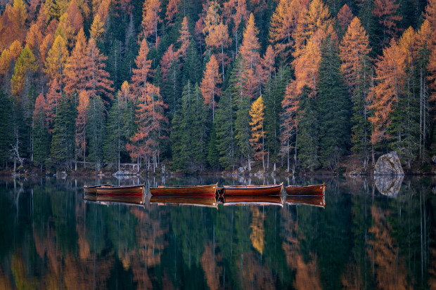 These images were shot on one morning at the stunning Lago di Braies ,in the Dolomites. The cool , still, sunny conditions provided the perfect scenario for the autumn reflections off this pristine lake . A morning to always remember !