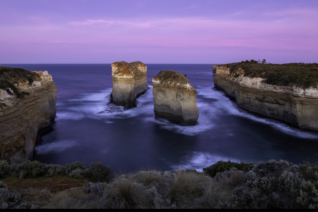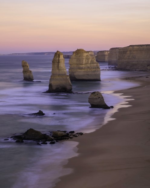 Mauve moments along the Apostles - Soft light drapes the limestone giants in hues of lilac and rose.