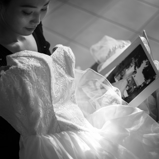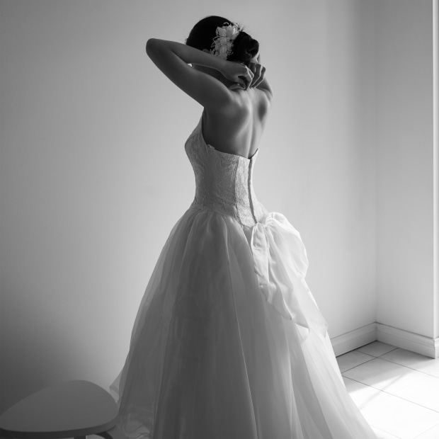 My daughter tries on the wedding dress I once wore — brought from Japan across thirty years of time and sea. The neckline falls seven centimeters short — a quiet trace of all that has passed. In her eyes, I glimpse both nostalgia and a gentle resolve to begin her life anew in this land. (Captured in my home near Semaphore Beach, South Australia, in the light of the setting sun on October 6, 2025, with a Leica M240.)