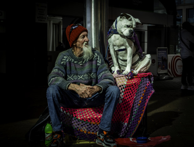 Amid the bustling streets of Sydney, a quiet bond speaks louder than words. An elderly man sits in calm reflection beside his loyal dog, both wrapped in warmth — one in a weathered sweater, the other in a patchwork of handmade blankets. Bathed in a shaft of light, their presence offers a moment of stillness and connection in a world that often rushes past. This photograph captures the dignity of companionship and the quiet resilience found in simplicity.