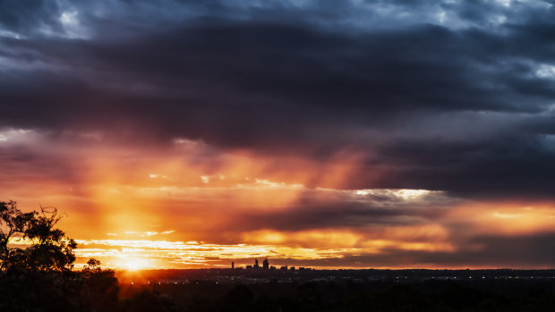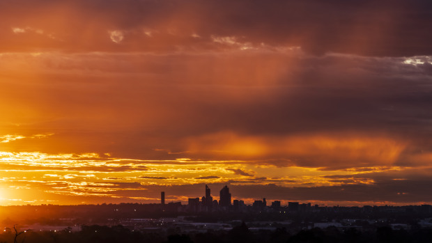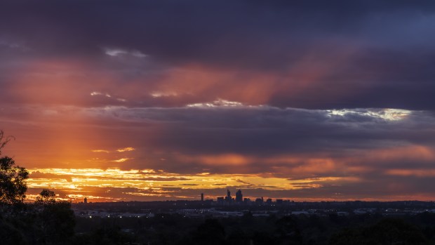 Beautiful sunset over the City of Perth, taken from Lasmurdie Falls Kalamunda