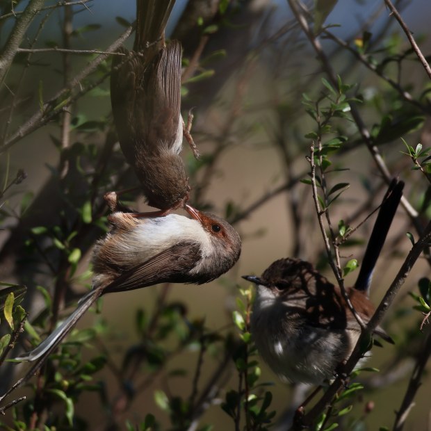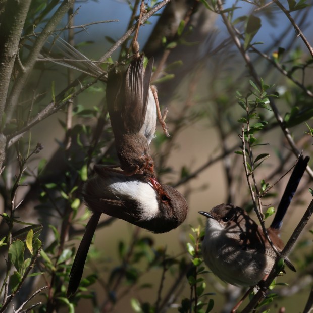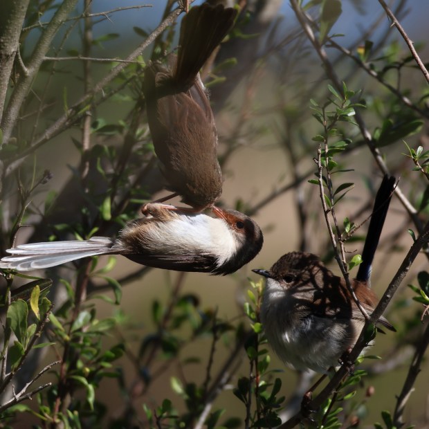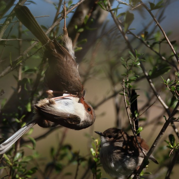These female fairy wrens were involved in a fierce, tough fight in the bushes while the male was silently watching in the background. It was not a breeding season, so was not clear why they were fighting! They were so quick and agile, and the action was happening covered in the bushes - so I was actually not able to get the clear view. Nevertheless, I thought it was some action worth capturing.