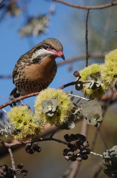 Honeyeaters are energetic little birds, and the Spiny-cheeked honeyeater certainly stands out with it's striking look and distinctive call.