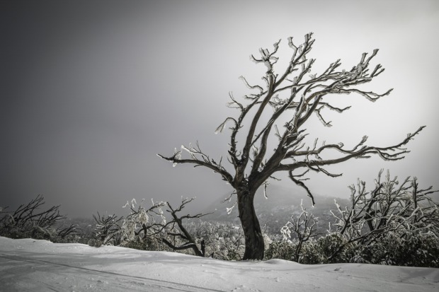 Australian, hardy gum tree showing its 'stamina' through the long winter on the Mount Buffalo pl;ateau.