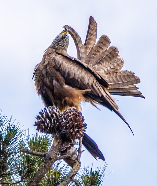 This Black Kite is having a well earned stretch and preen, striking the perfect pose.