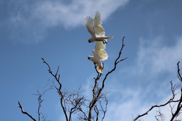 When we were going camping I saw these cockatoos and I was wating for them to take of so Icould take some photos of them flying.