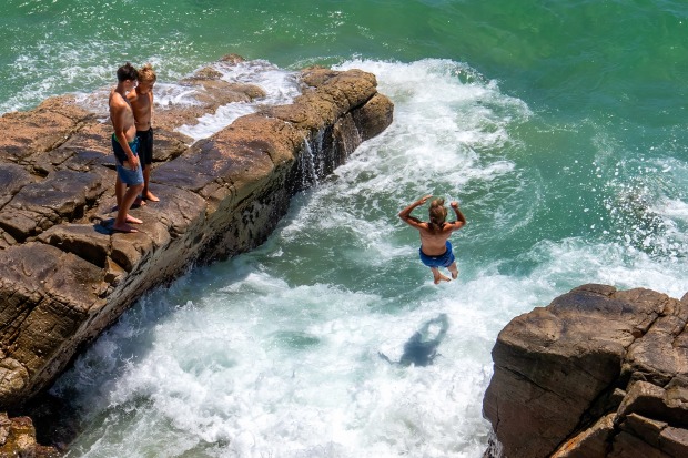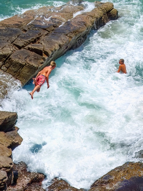 Could there be a better way to spend a hot summer holiday morning than spending time with mates and timing your jump to the incoming waves at the Boiling Pot, Noosa National Park.