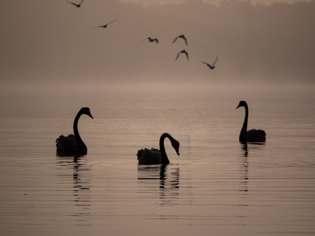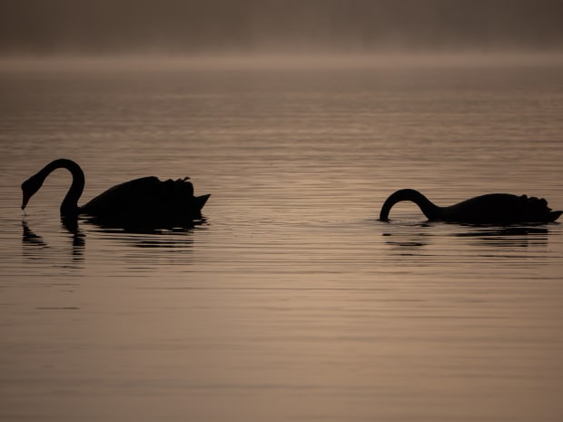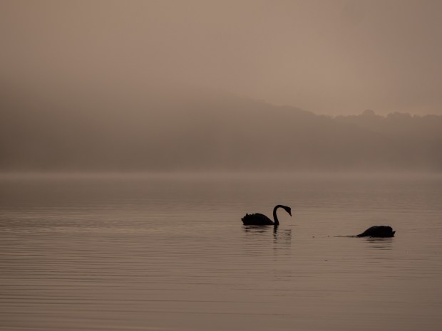 The fog came across the lake moments after sunrise and created a mystical atmosphere to capture the swans.