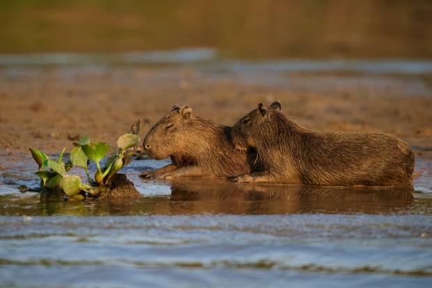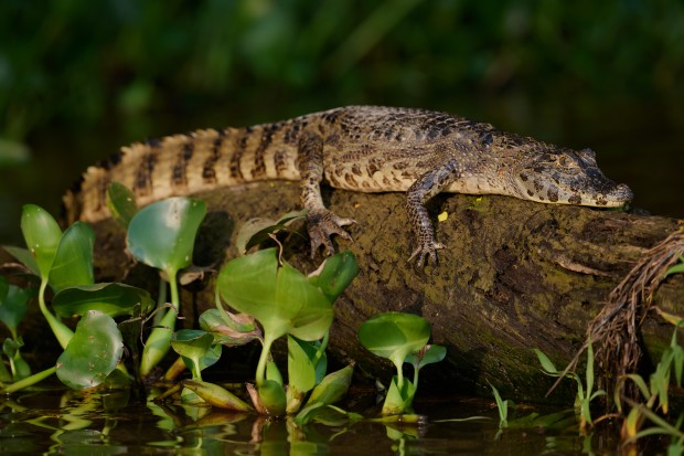 In the late afternoon and early morning, the wild expanse known as the Pantanal - the planet’s largest wetland - is saturated, jewel-like, with colour. A female jaguar (Panthera onca) - named Stella by local biologists and one of the many progeny of the region’s reigning matriarch, Patricia - bathes in the last rays of the setting sun, draped on a tree branch overhanding the Corixo Negro. A young Yacaré caiman (Caiman yacare) rests on a fallen log in the soft light of dawn. Caiman are the jaguars’ main food source in this part of the Pantanal. As the sun sets, two juvenile capybara (Hydrochoerus hydrochaeris) rest on the muddy shore of one of the Pantanal’s many meandering waterways, close to the family group are watching over them. A Black-crowned night heron (Nycticorax nycticorax) - one of 13 species of herons and egrets that help make the Pantanal one of the world’s most biodiverse bird habitats - waits to strike as morning lights up the Corixo Negro.