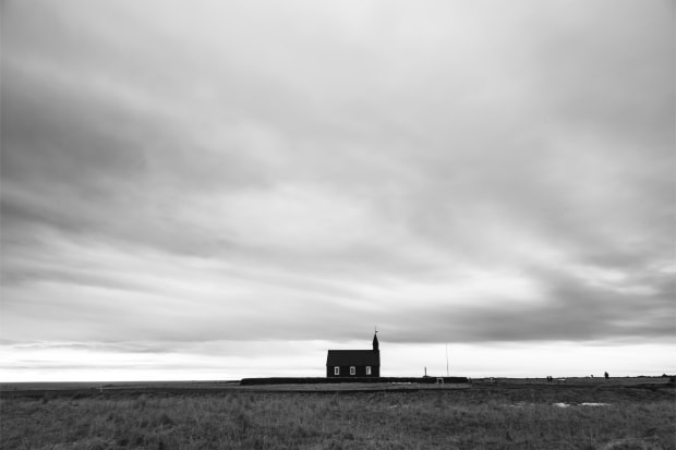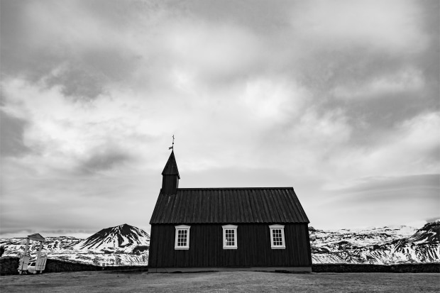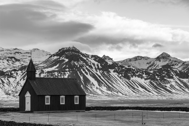 This place where only black and white exist, the Snaefellsnes Peninsula in Iceland. To protect against the harsh Icelandic climate, the little wooden church is coated in pitch. The contrast between the flat walls of the black church and the lines formed by the remaining snow on the mountains was just stunning.