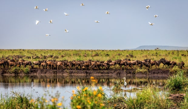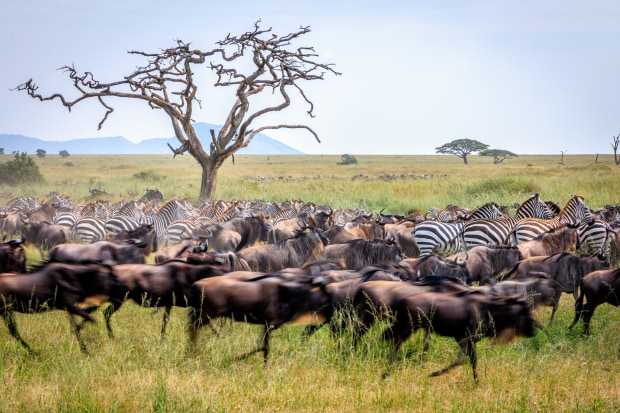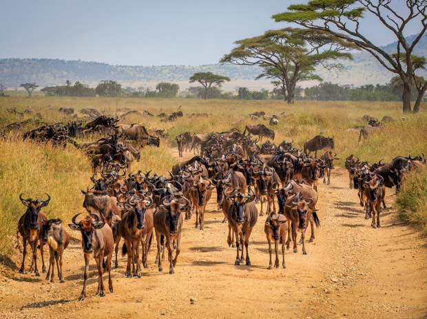 The Great Migration in Tanzania where 2 million Wildebeest and 1 million Zebra move in a circular route chasing water and food continuously.