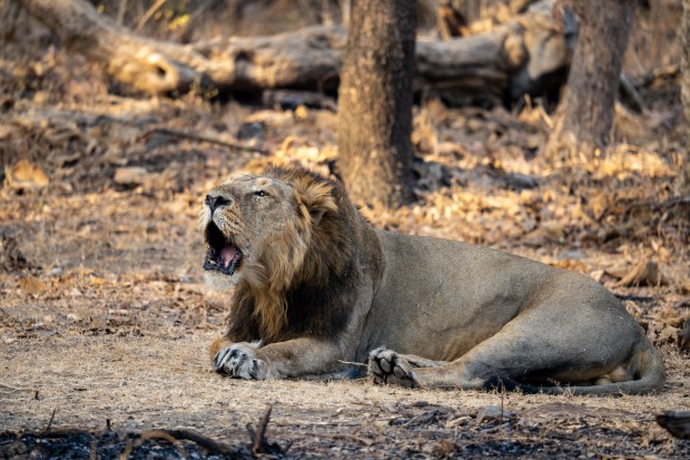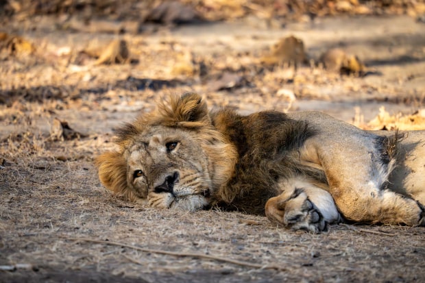 A adult male Asiatic Lion enjoys resting in the first morning light before letting out a all mighty roar to let the jungle know who rules this territory in Gir National Park.