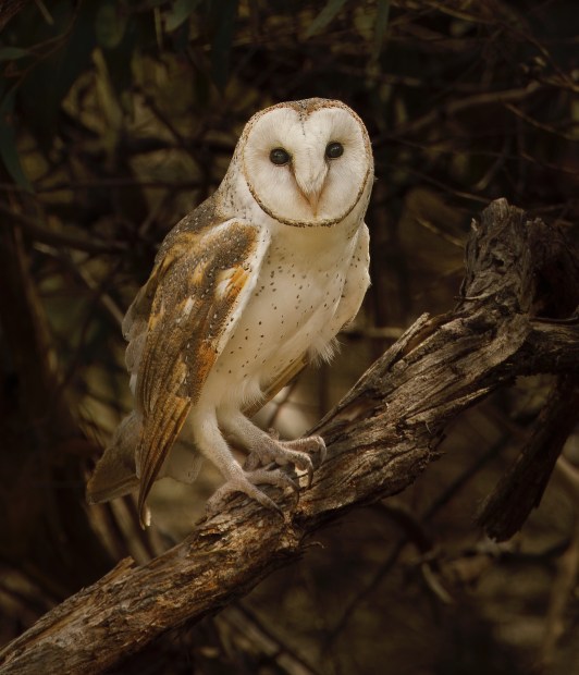 Owls are very fond of mice for lunch! Owls are called raptors or birds of prey, which means they use their sharp talons and beaks to hunt, kill and eat other animals. Sadly, many owls in Australia die by eating mice and rats that have ingested baits and poison intended to keep mouse plagues at bay. Luckily, there are programs in place to encourage famers to use Barn Owls as natural pretors to keep mice populations under control. This owl enjoyed his lunch and I'm hoping he gets to enjoy many more.