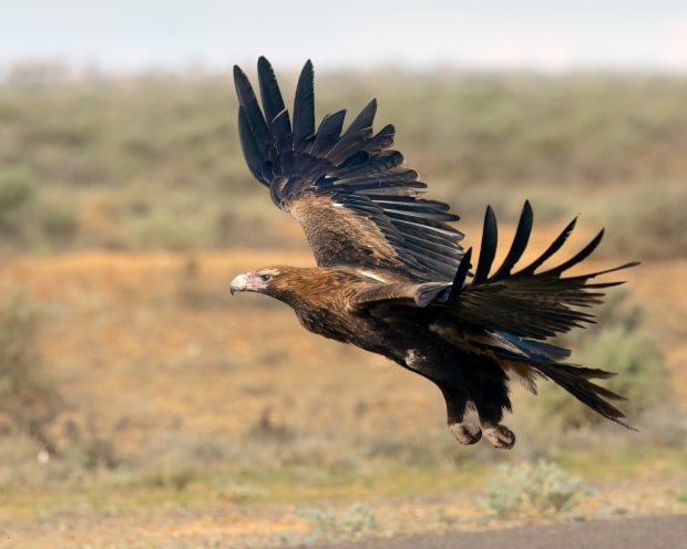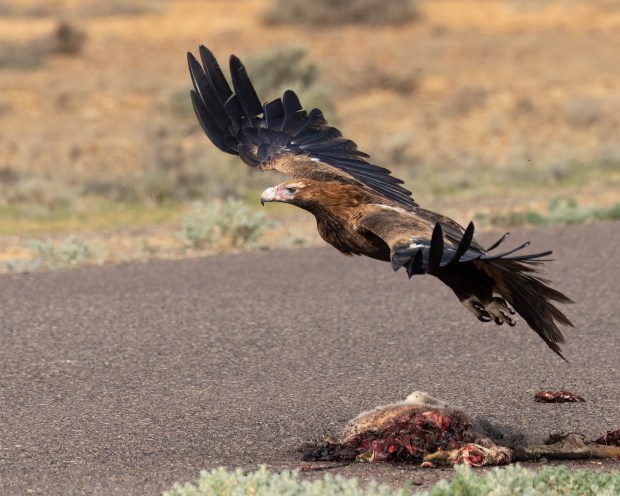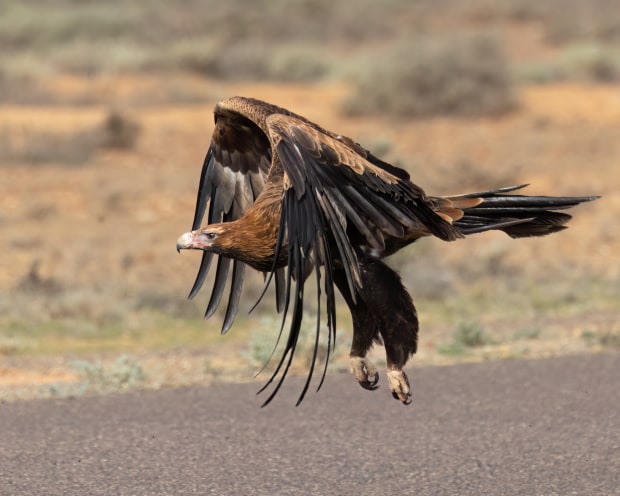 My encounter with this Wedge-tailed Eagle was something special. It allowed me to get closer than I ever expected and only flew off when vehicles were approaching along the highway. The power in its legs and wings to take off so quickly was amazing to watch.