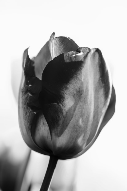 Emphasising the beautiful tulips form , texture and scultural quality through black and white photography