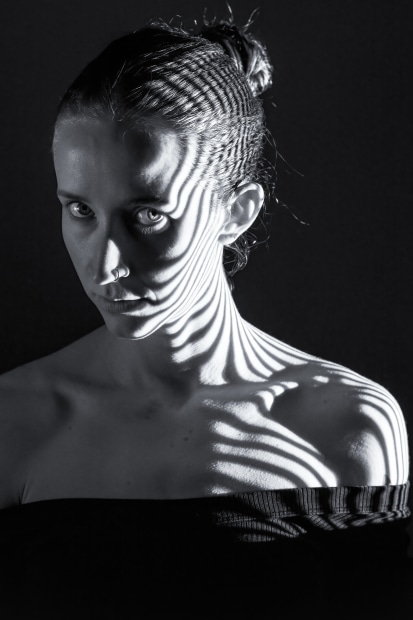 "Traced in Light" explores the interplay of form, identity, and perception through projected patterns of light and shadow. Each portrait captures a fleeting moment where illumination both reveals and obscures, transforming the human figure into a living canvas. The series invites viewers to consider how light can shape not only what we see—but how we see it.