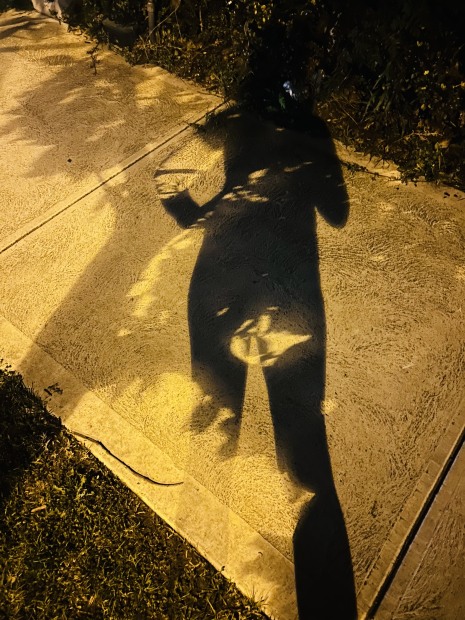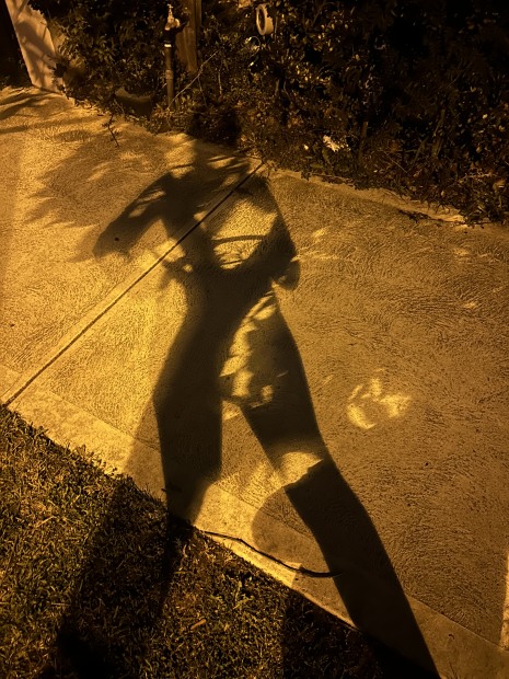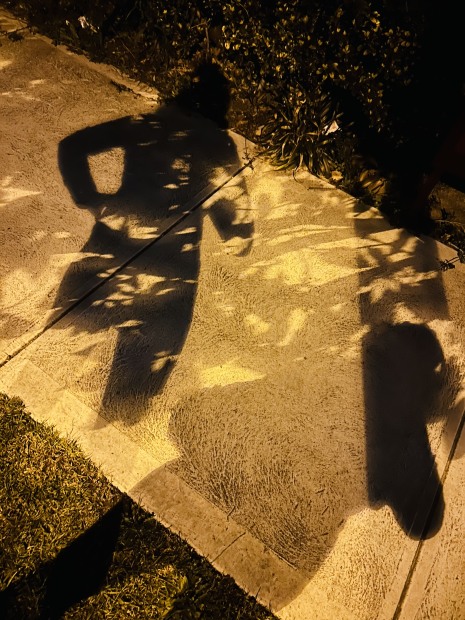 Naturally occuring overlayed shadows on the pavement in the early morning