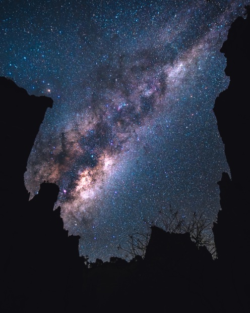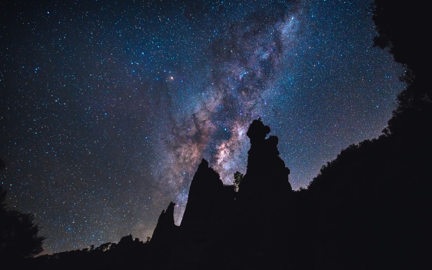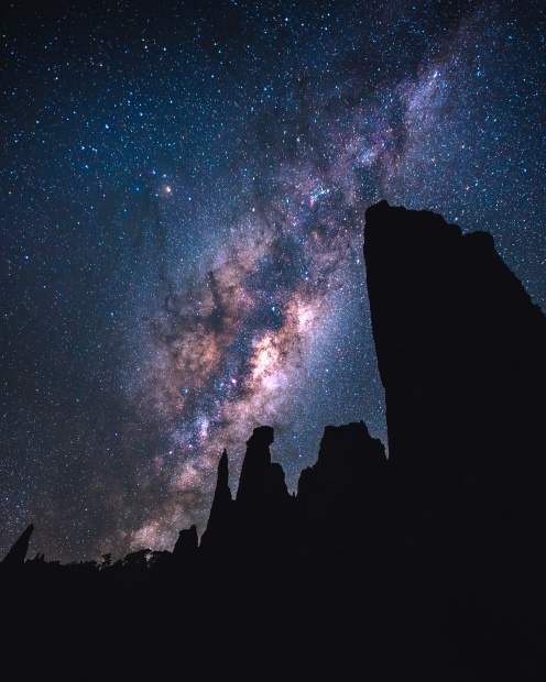 Silhouette of rock formation around Pinnacles, Wairarapa, one of the Dark Sky reserves.