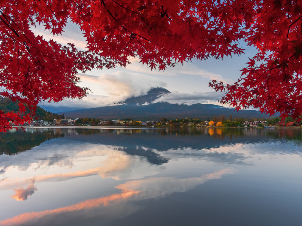 All images were captured under the same maple tree, resplendent in autumn colour, looking out in different directions across Lake Kawaguchi, Japan. I found this spot on my first afternoon in the area and was completely enchanted by it. I visited here on 6 separate occasions over the course of a week, spending approx 15 hours waiting and hoping to capture Mount Fuji in all her glory. On each of my first 5 attempts, Fuji remained either partly or totally veiled in cloud or fog. These conditions proved to be perfect however to shoot the character filled little jetty under the tree, which became some of my favourite images from the trip. It wasn't until my very final morning in the area that I was lucky to witness my dream conditions, with rising morning fog revealing the majesty of Mt Fuji bathed in beautiful morning light.