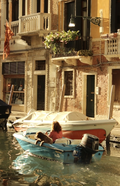 Evening boat ride through a Venetian canal
