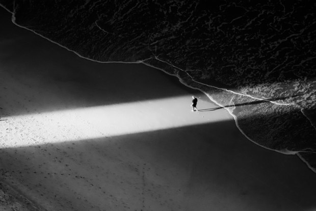 I managed to capture the moment when a man broke through the shadows and into the light while taking a stroll on a Gold Coast beach. With the long shadows on the sand and water cast by nearby tall buildings, this photo also demonstrates the relationship between the urban and the coast.