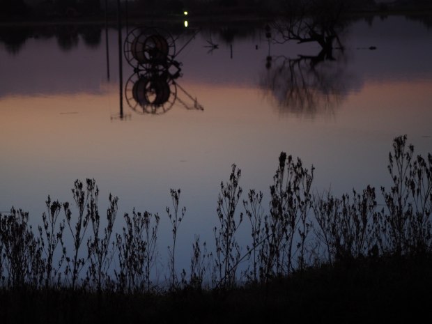 Reflections of vegetation and objects in the Hunter River at Morpeth following the heavy rainfall in August 2025.