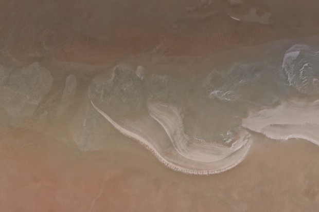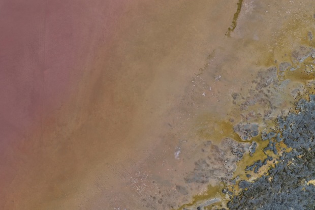 The edges of pink salt lates provide an opportunity for evocative and ethereal photographs - where pink, salt, and sand meet