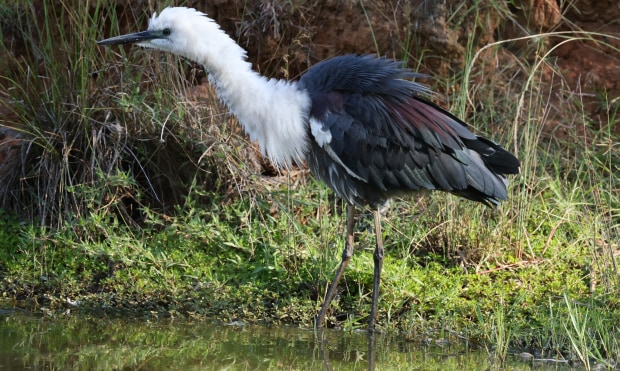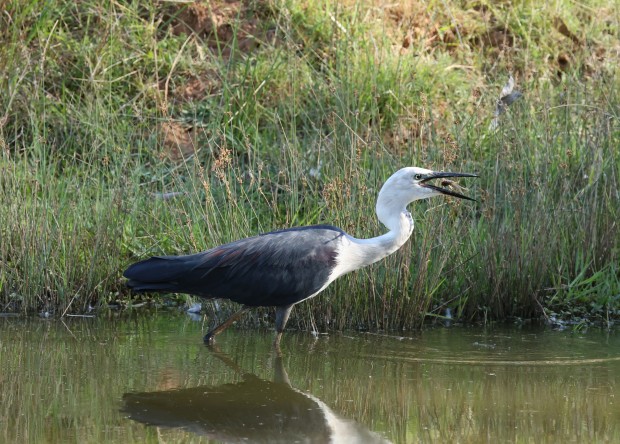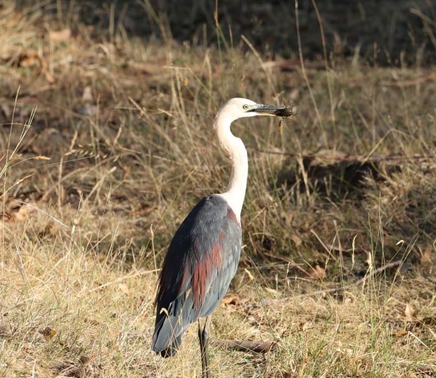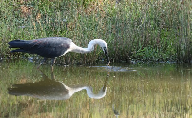 White Necked Heron and yabby with varied sizes caught and devoured