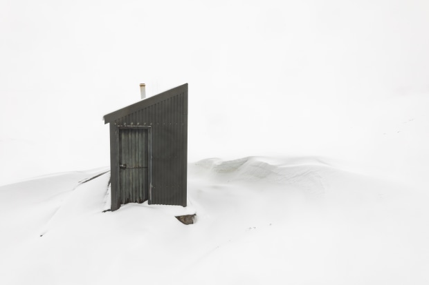 Murray Parkinson, Whites River Hut in a Snow Storm, Munyang River Valley (LANDSCAPE 2025)