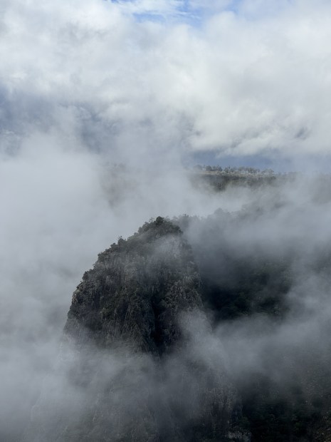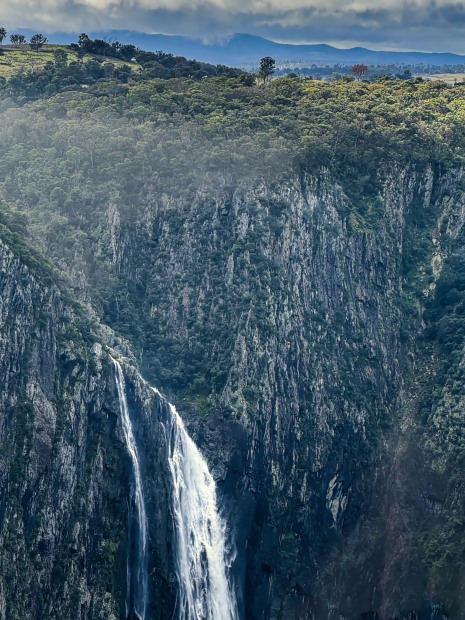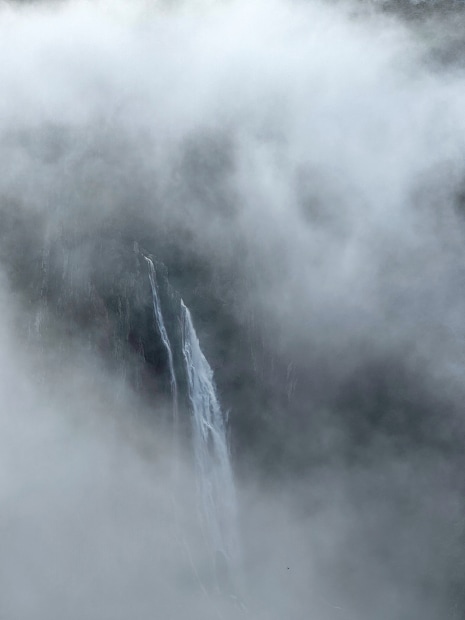 These falls in the deep canyon are always spectacular, better never more so after heavy rain and hidden in the mist.